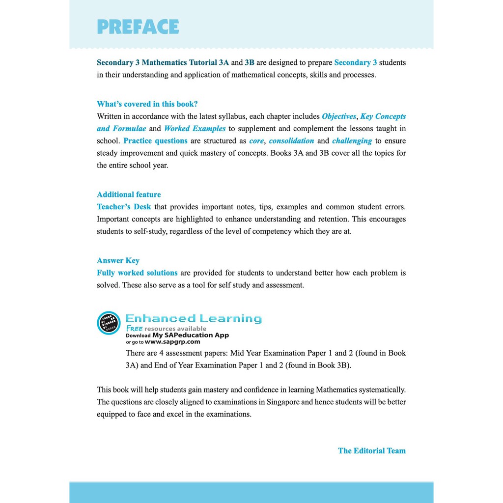 Secondary Mathematics Tutorial 1A - 3B [Express / G3] | Topical | Secondary Math School Assessment Books - SAP