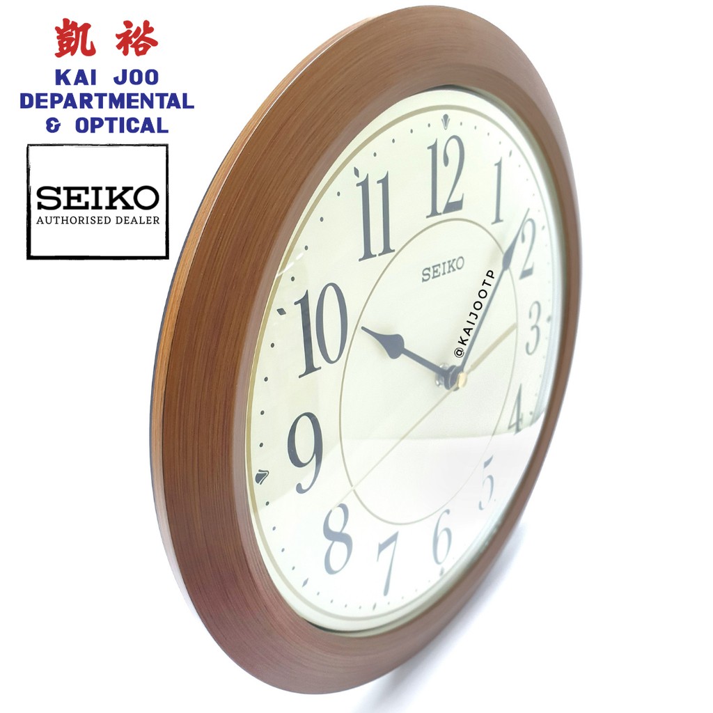 Seiko Decorator Wood Design Case Curved Glass Wall Clock With Silent/Quiet Sweep Second Hand (30cm)