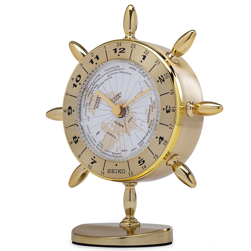 Seiko World Time Ship Wheel Mantel Desk Clock QHG107G