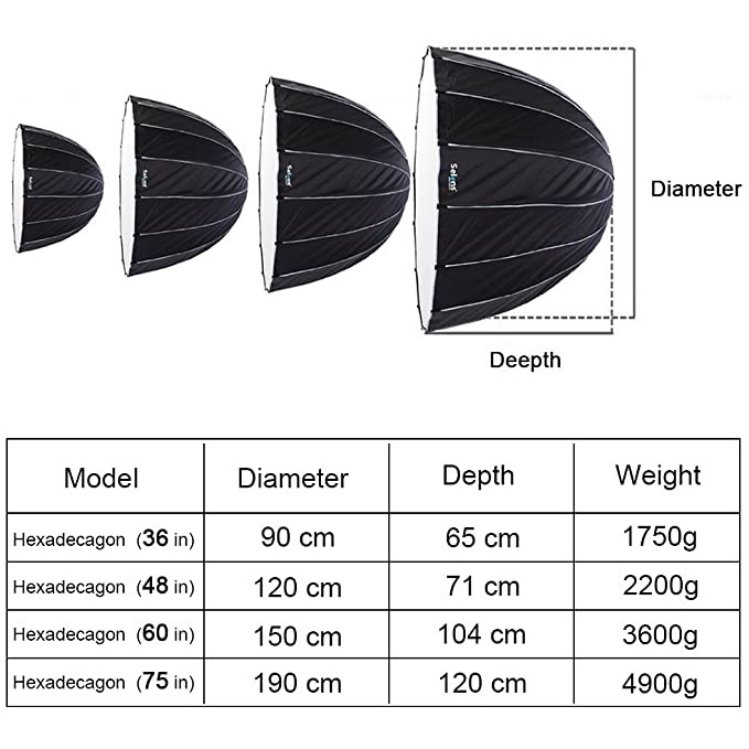 Selens 190cm Photography Softbox Parabolic Softbox with Bowens Mount Hexadecagon Deep Soft Light Box for Photo Studio Lighting Flash 90cm 120cm 150cm