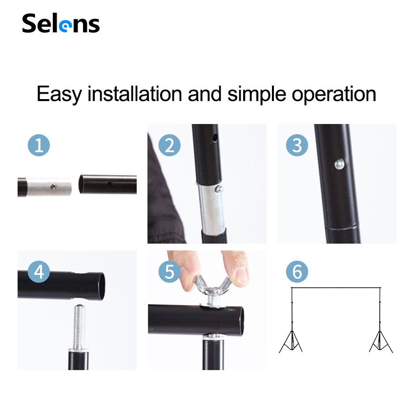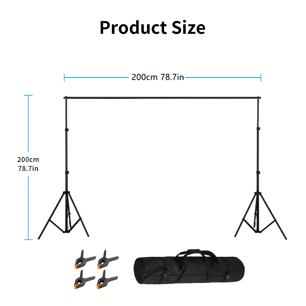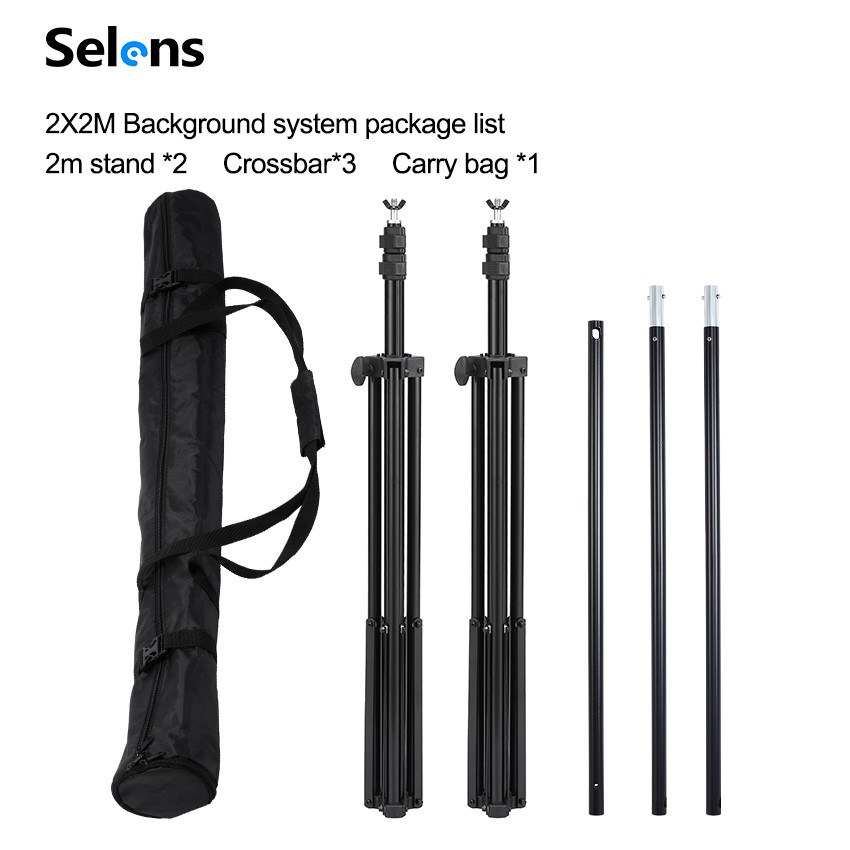 Selens 2X2M Backdrop Stand Studio Photography Background Support System Stand For Photoshoot With Bag Clips