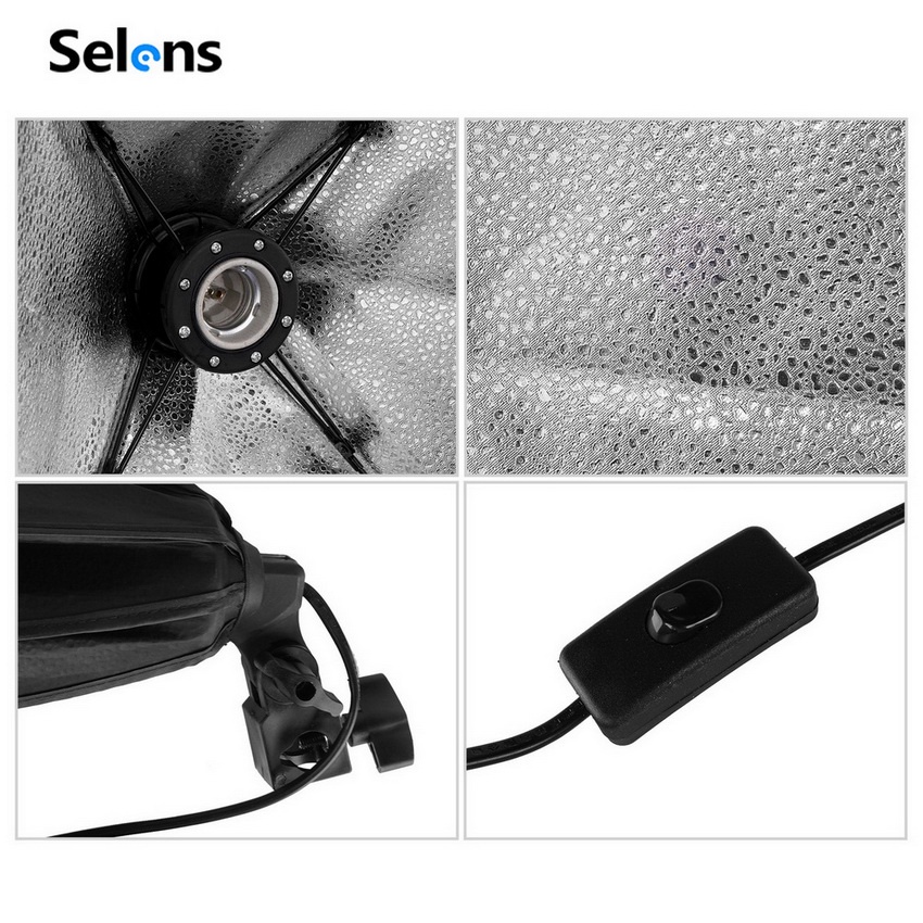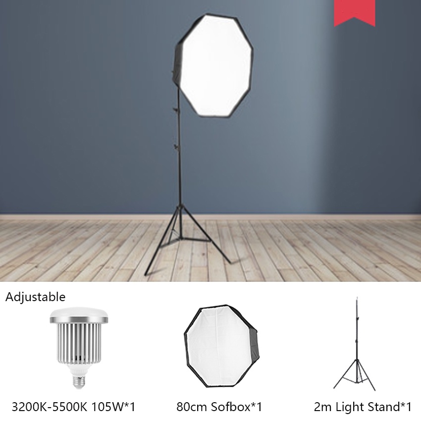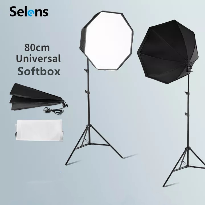Selens 80cm Softbox Umbrella Lighting Set Photography Studio Parabolic Quick Release Octagonal Soft Box With E27 Socket Lamp Bulb & 2M Light Stand