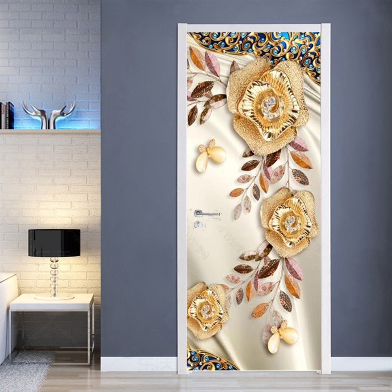 Self Adhesive PVC Door Sticker jewelry flower modern Home Decor Door Wrap Wall Sticker Mural porch Wallpaper Poster