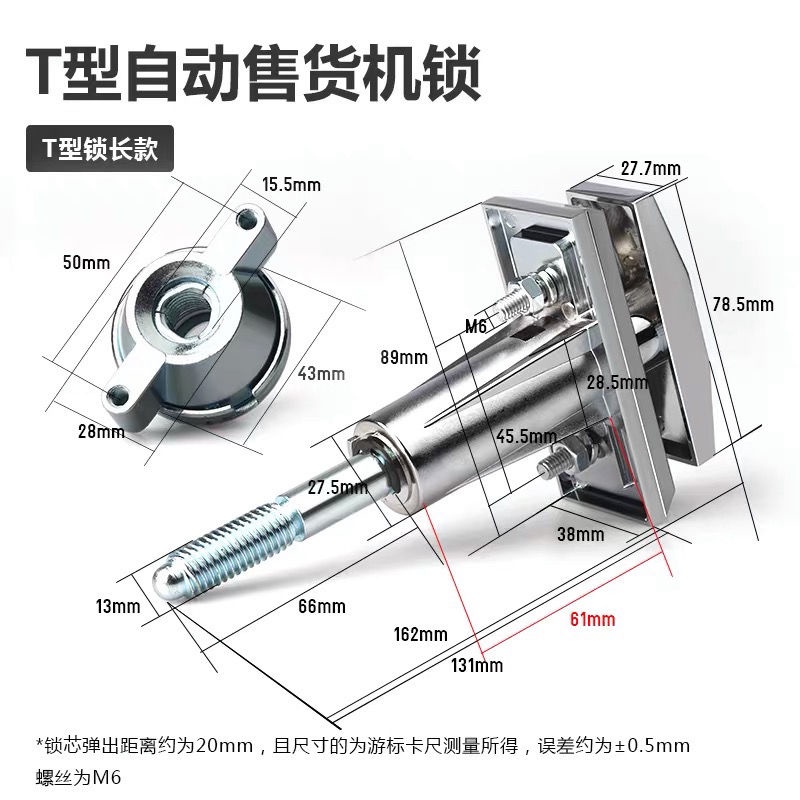 Self-Service Vending Machine Door Lock, Water Cabinet T-Lock, Lock Cylinder