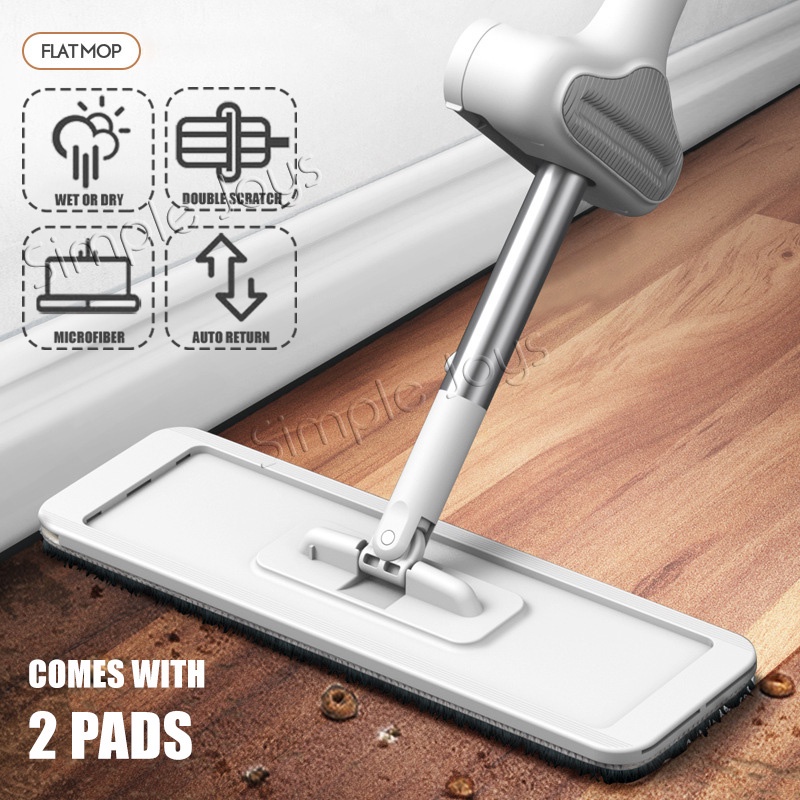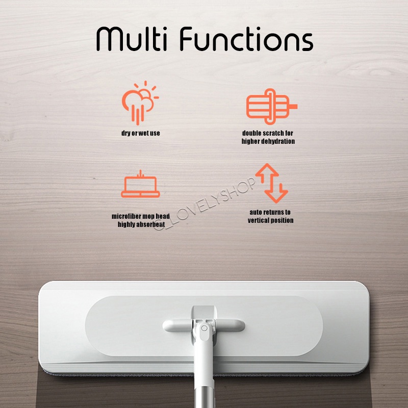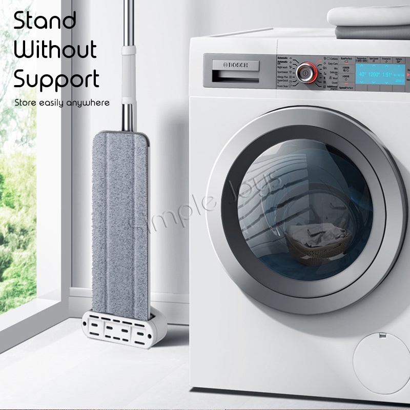 Self-Wringing Hands-Free Flat Floor Mop Wet/Dry Scratch Dry Swivel Mop Stand Without Support