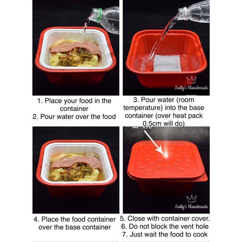 Self heating pack or set with container FOR picnic hiking camping heat cooked food
