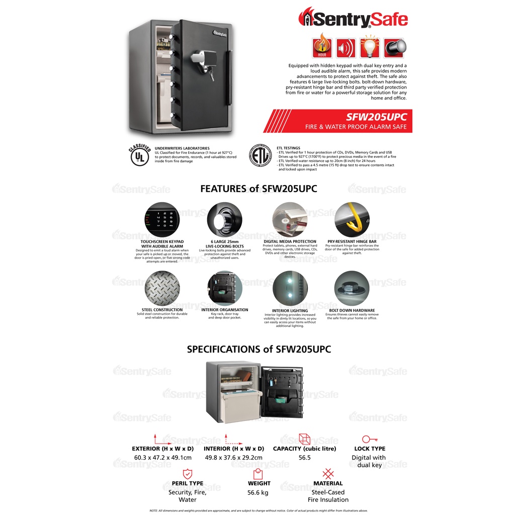 SentrySafe SFW205UPC Digital Alarm Fire & Water Resistant Safe
