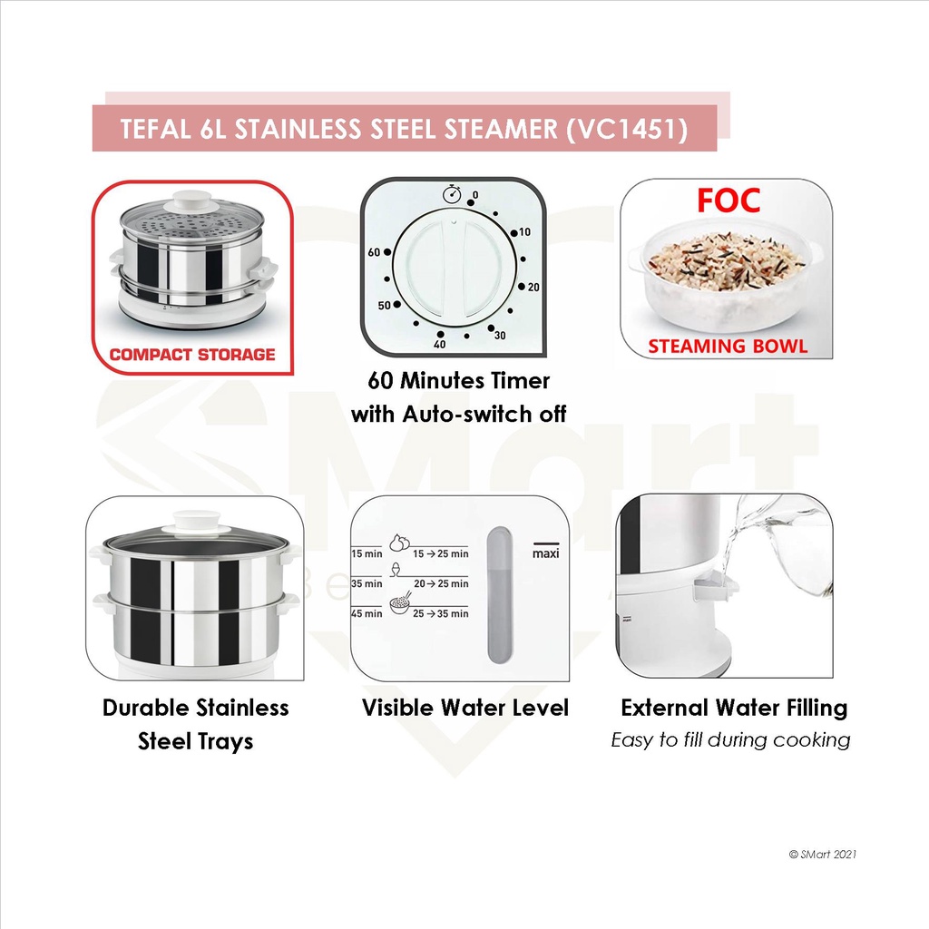 Tefal 6L Stainless Steel Food Steamer [VC1451]