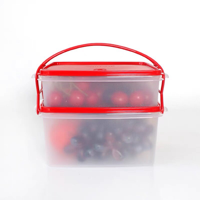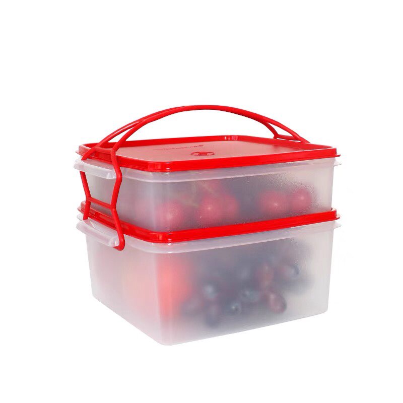 Set OF 2 TUPPERWARE COOL STORAGE BOXES 2L-4L WITH RED HANDLE