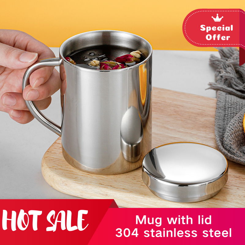 304 Stainless Steel Coffee Mug with Double Wall, 200ml/300ml/400ml with Lid.
