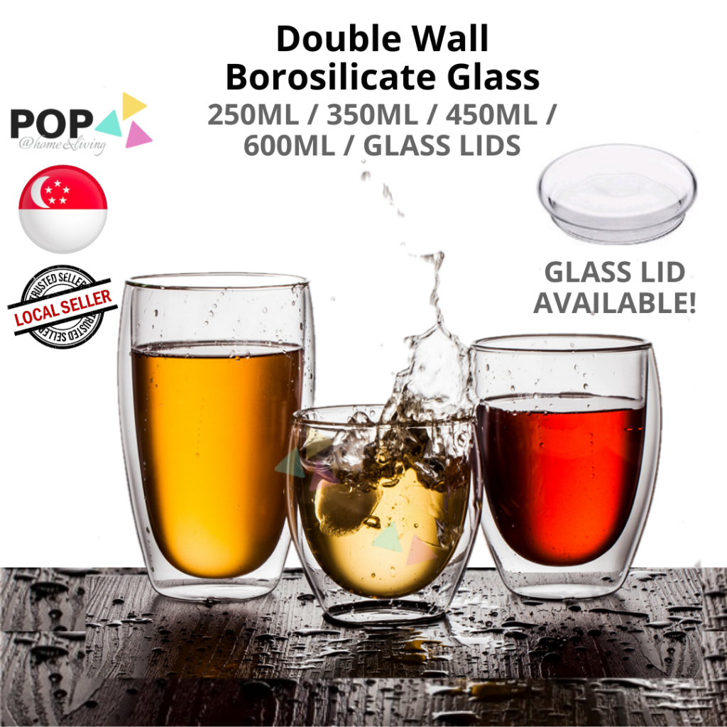 Clearance Double Wall Glass Lid Borosilicate Insulated Beer Whisky Coffee Tea CNY Raya Party Dessert Cup Drinking