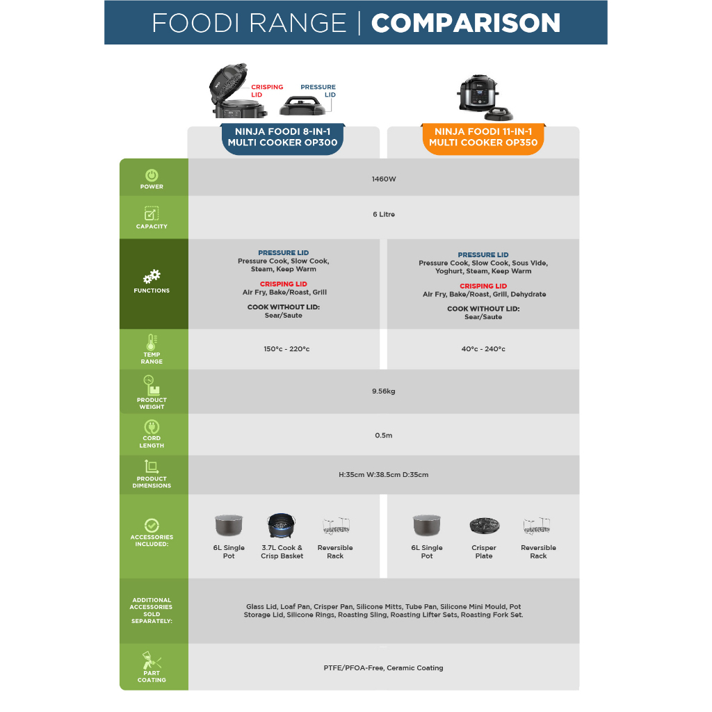 Ninja Foodi 11 in 1 Multi Cooker 6L, Pressure cook, Bake, Roast, Dehydrate, Slow Cook, Air Fry, Grill, Steam - OP350
