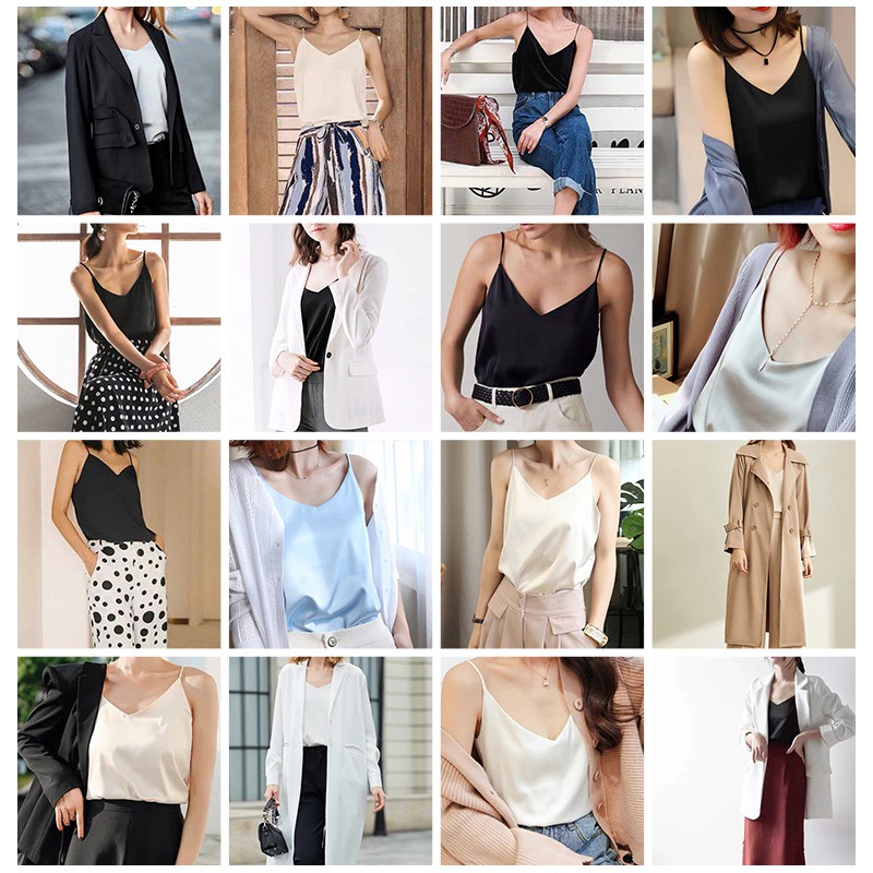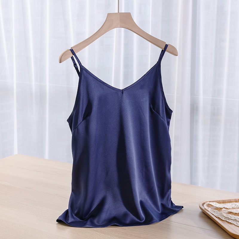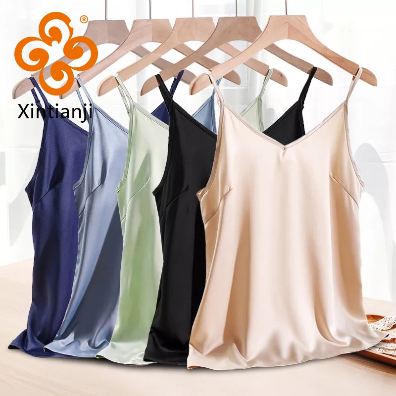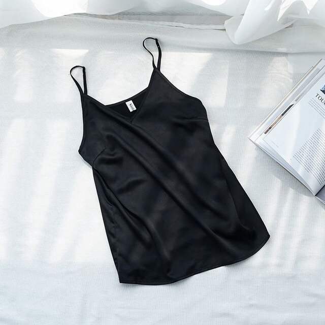 Fashion Satin Women Tank Tops Black Blue Sleeveless Spaghetti Strap V Neck Streetwear Camisole S-2XL plus size M30305