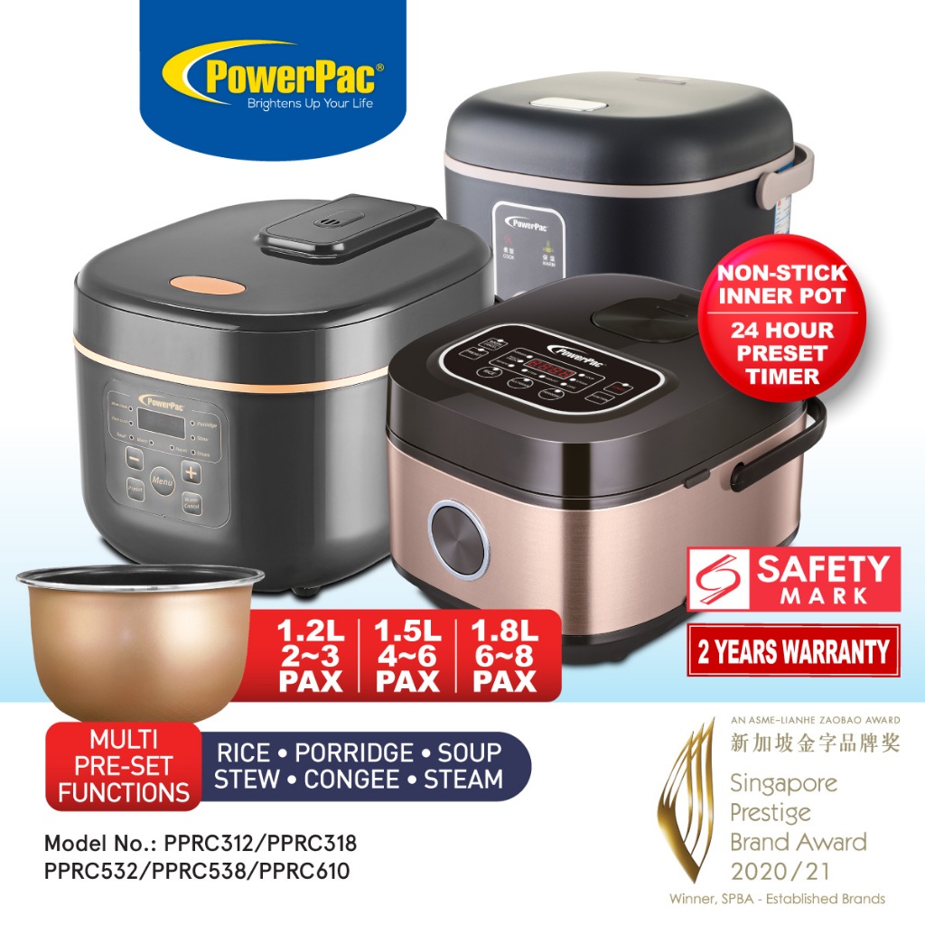 PowerPac Multi-Purpose Digital Rice Cooker 1.2L-1.8L with Non-stick Inner Pot (PPRC312/PPRC318/PPRC532/PPRC538/PPR610)