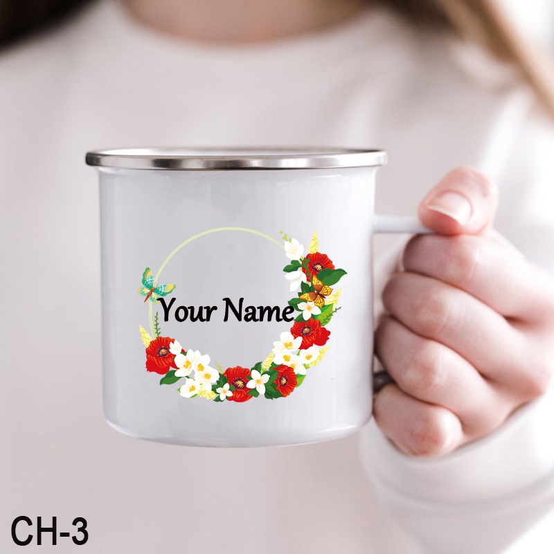#Custom# your name/text Fashion Enamel Mug Campfire Coffee Mug Personalized Mugs Creative Gifts
