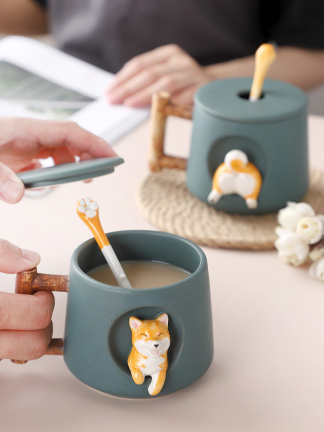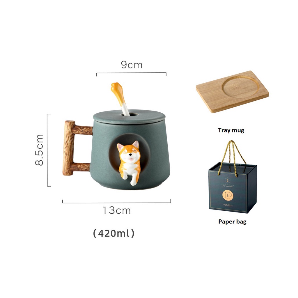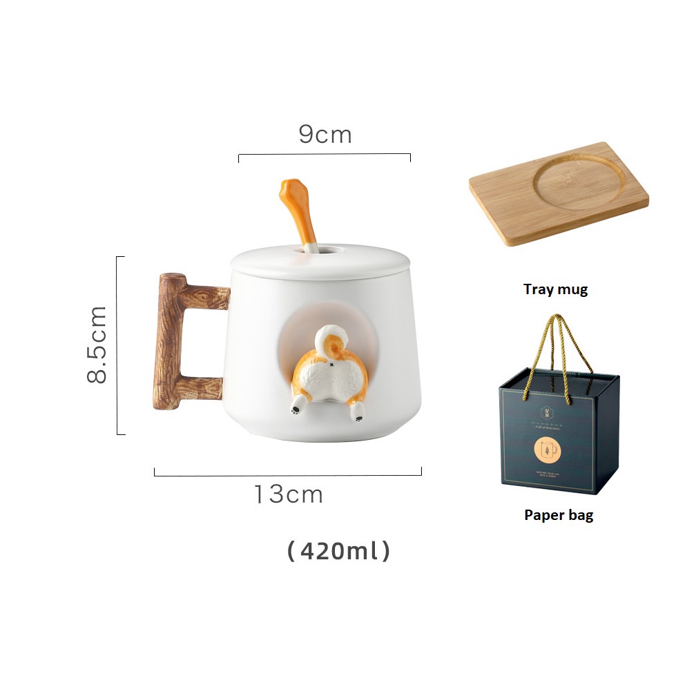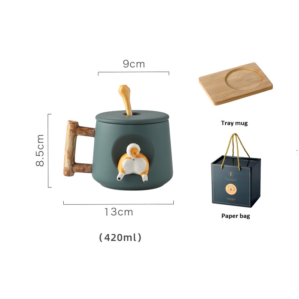 [SG Stock] Handbag and Corgi Ceramics Mug Glass Mug Set Tray Gift for Christmas Birthday