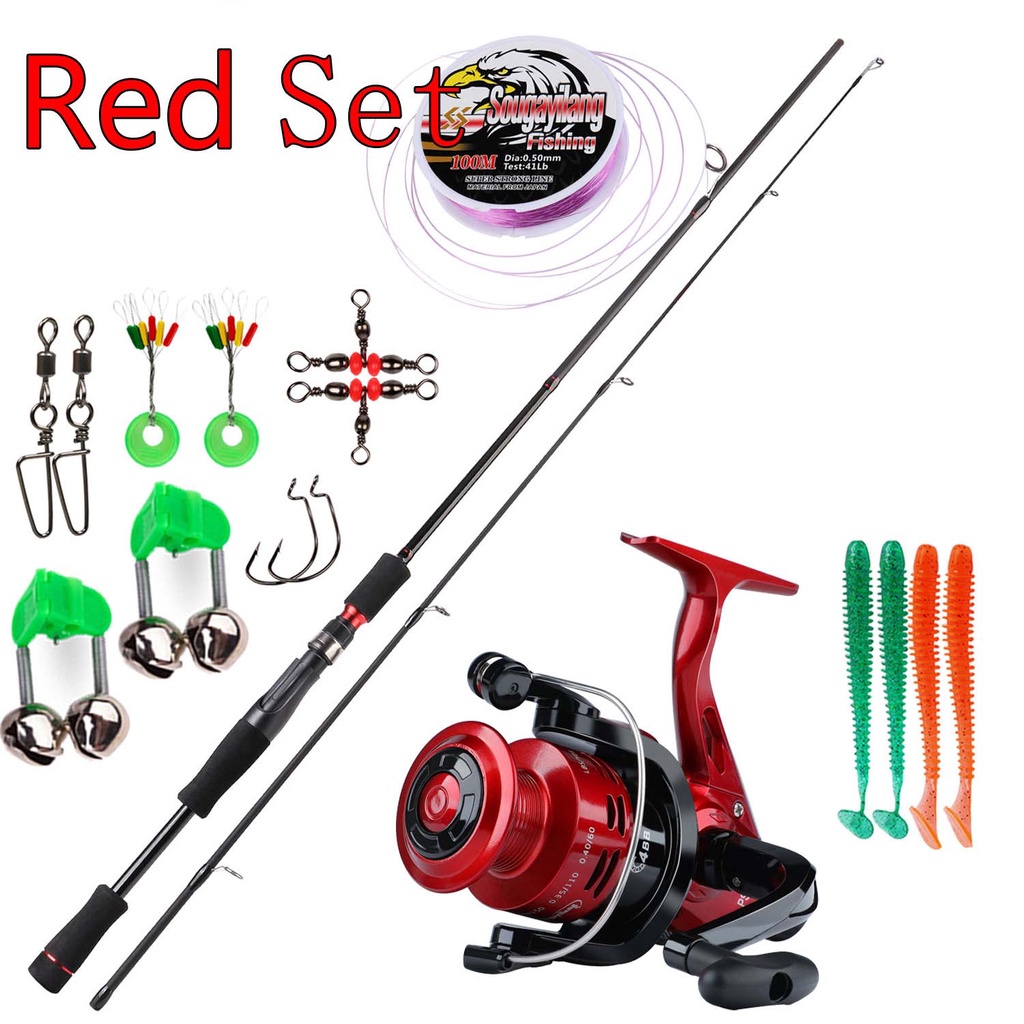 Set Spinning Fishing Rod 2 Section Carbon Fiber EVA Handle 6FT and Fishing Reel with Line Lures