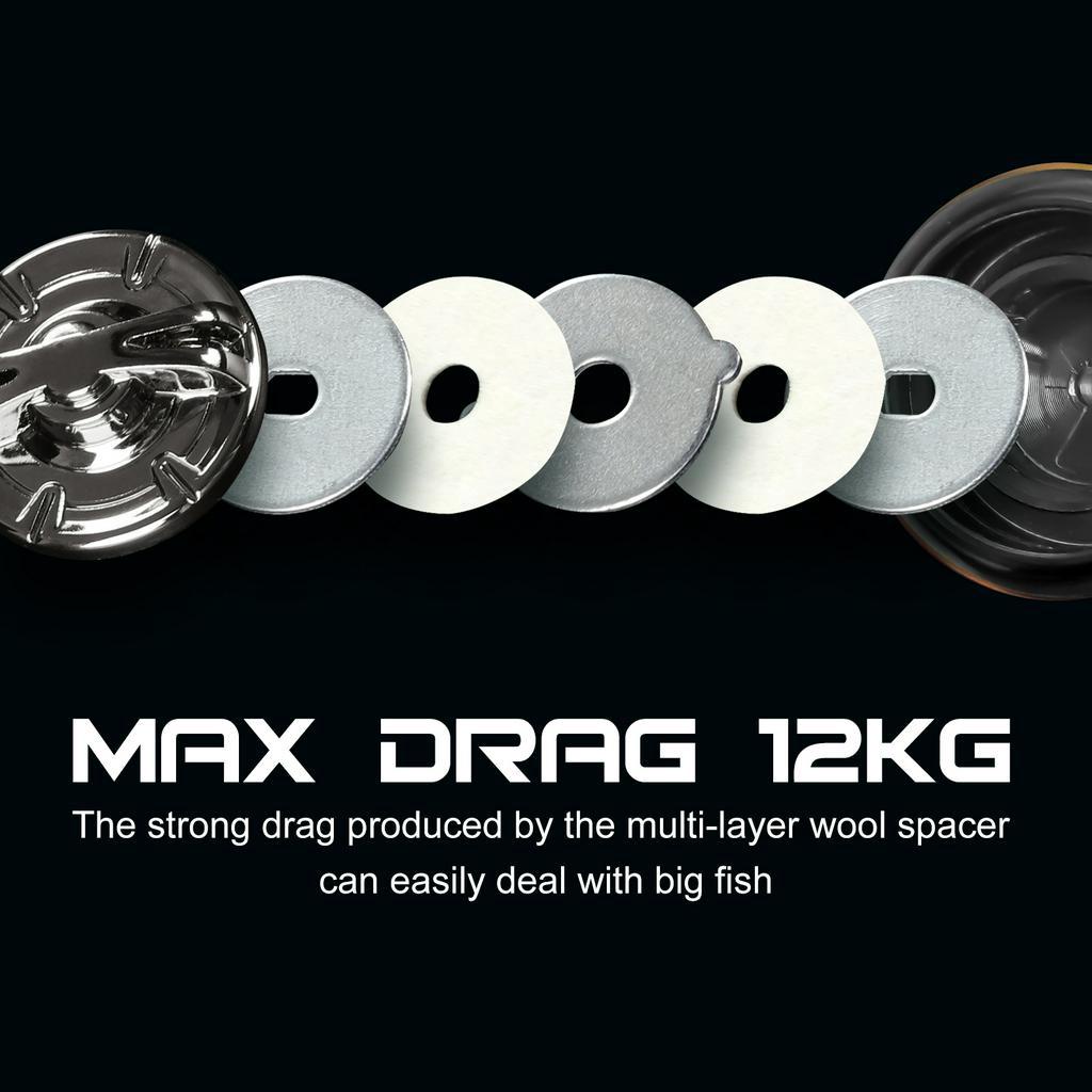 Shallow Spool Spinning Reel Max Drag 12kg Assemble Double Handle Ratio 6.2:1 Freshwater/ Saltwater Ultralight Carp Fishing Reel 7+1 Staniless Steel Bearings