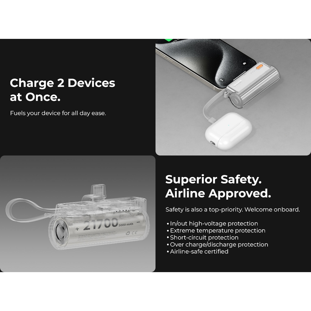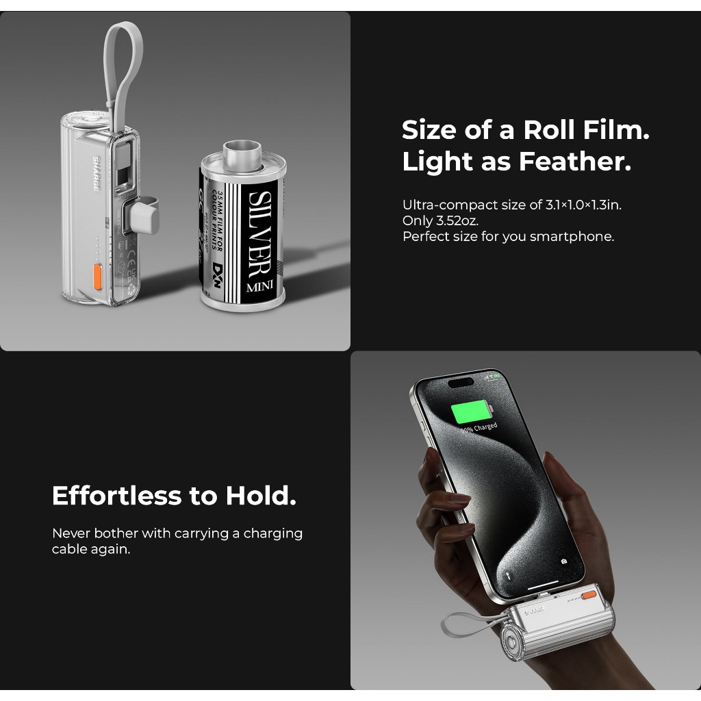 Shargeek/Sharge Flow Mini / Flow mini 2 5000mAh 22.5W Portable Charger w Built-in USB-C Connector and Cable Airline Safe