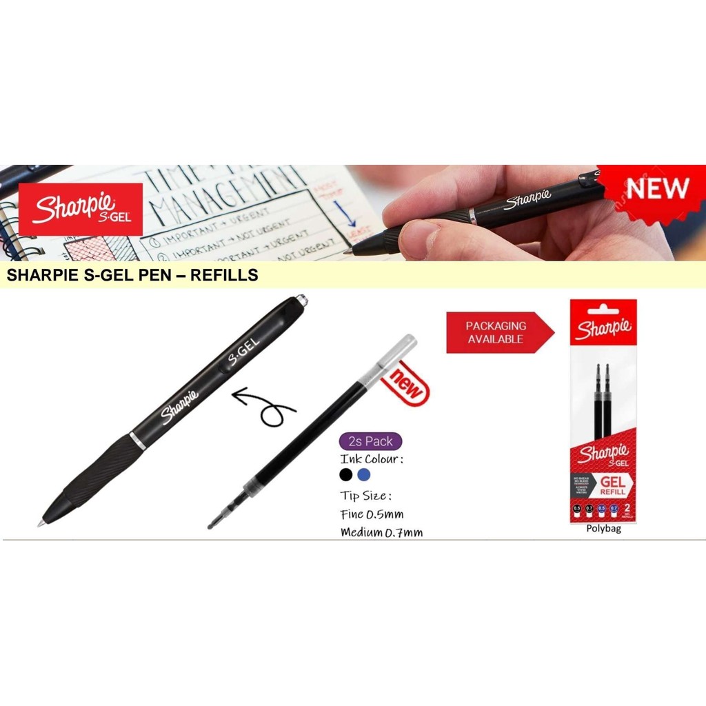 Sharpie S-Gel Gel Pen Refill 0.5mm 0.7mm Black or Blue Pack of 2