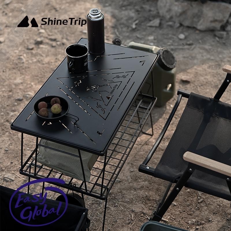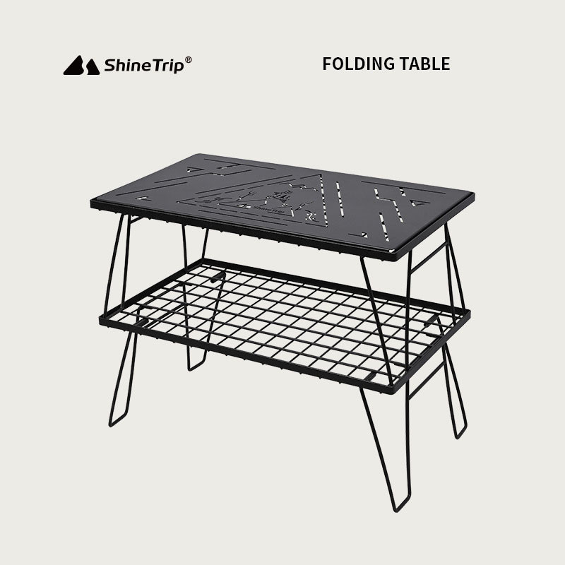ShineTrip Camping Blackened Chess Cloth Iron Mesh Table Iron Fence Combination BBQ Table Portable Folding