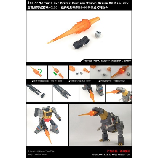Shockwave Lab SL-136 Fire Effect Parts for Studio Series SS86 Grimlock