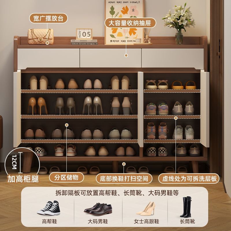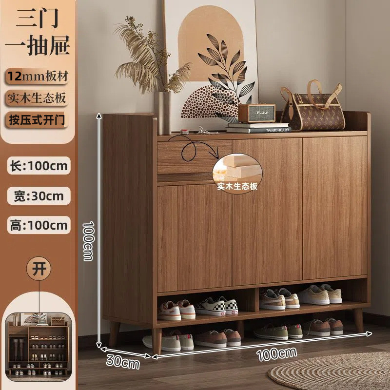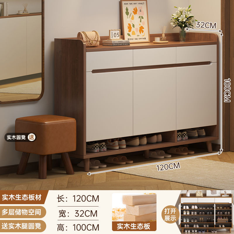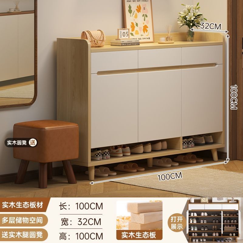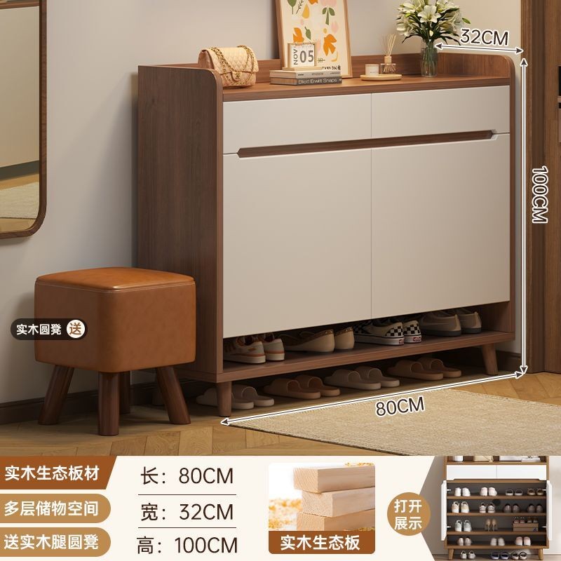 Shoe Cabinet Original Colour Solid Wooden Shoe With Drawer Living Room Household Multi-layer Storage