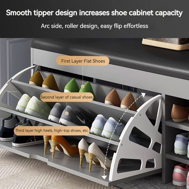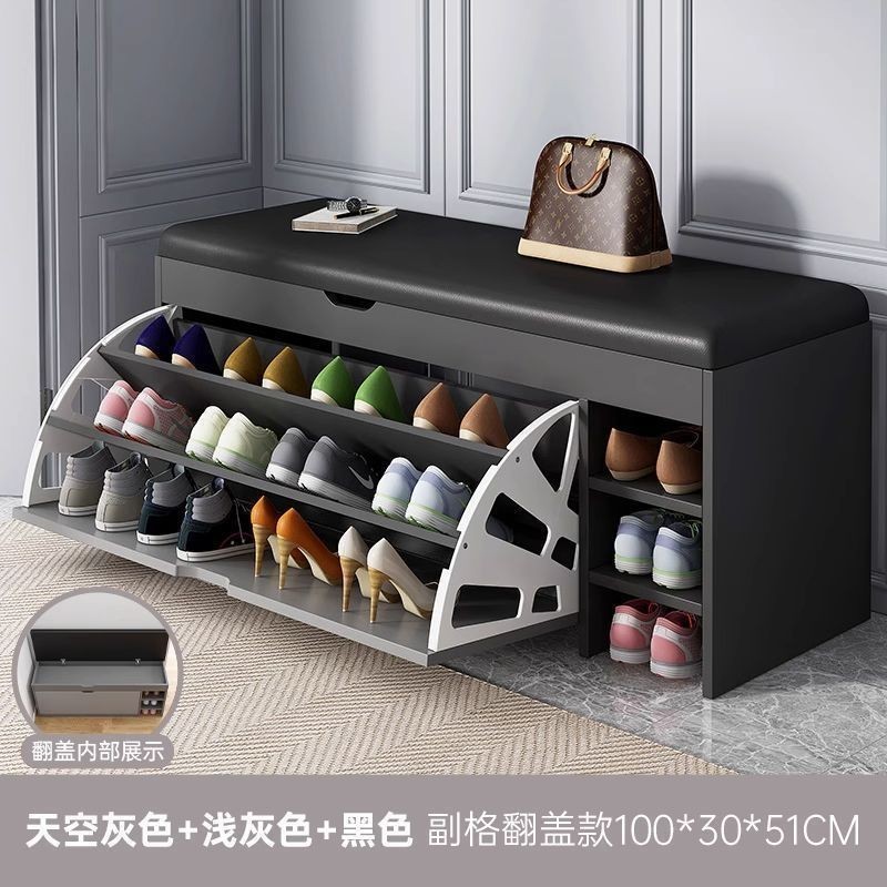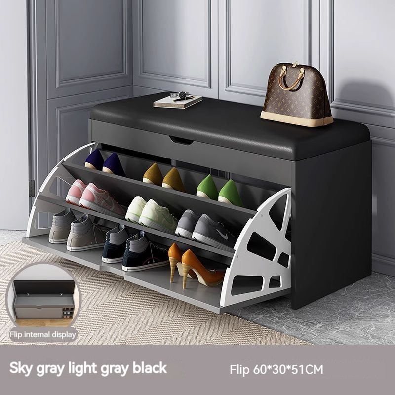 Shoe Cabinet PU Leather Shoe Stool With Door Shoe Rack Living Room Changing Shoe Stool