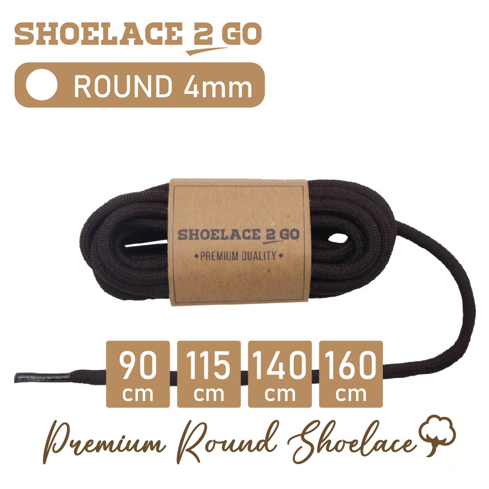 Shoelace 2 GO PREMIUM ROUND SHOELACE - SR4 - C2 - DARK BROWN - 4MM - 90CM 115CM 140CM 160CM
