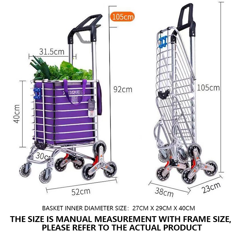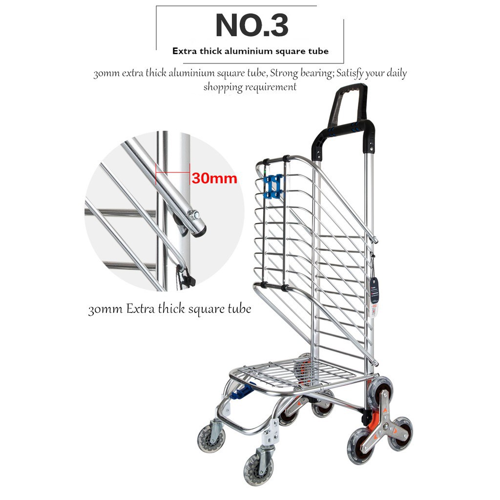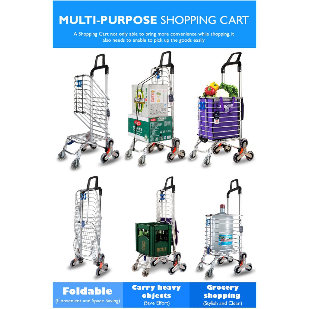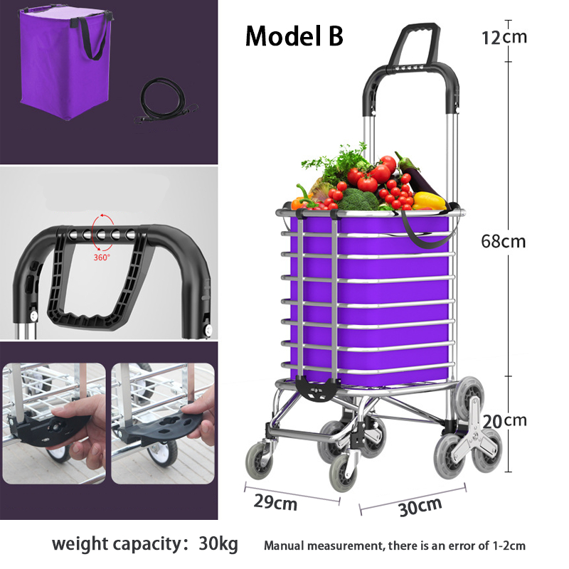 Shopping Trolley foldable market trolley with Rotating handle 8 wheels Labor-saving Stair Climb