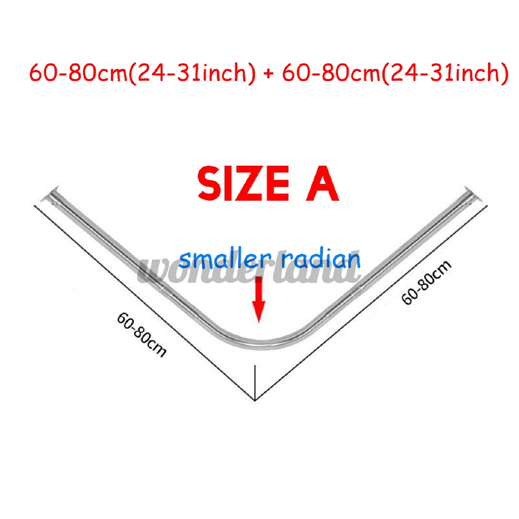Shower Shower curtain pole track pole, L-shaped stainless steel curved shower pole, expandable wall mounted telescopic adjustable shower GETW144