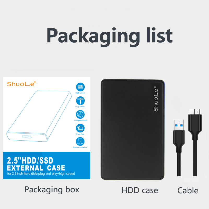 ShuoLe 2.5 "HDD Enclosure external hard disk Portable SATA to USB 3.0 Hard Drive Reader with Upgraded Cable for 2.5'' SSD HDD on Business Travel, Support UASP