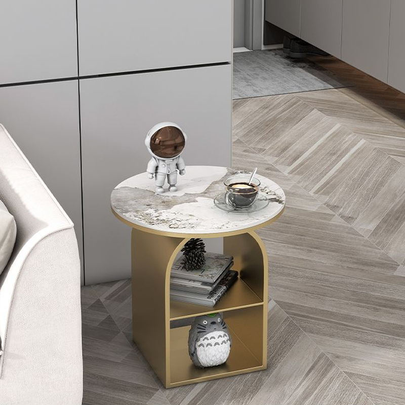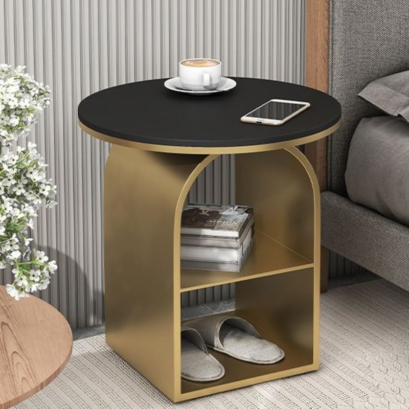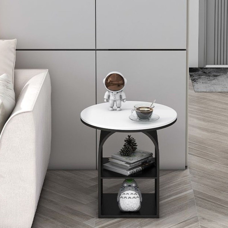 Side Table Glass Bilayer Bedside Table Thickening Small Table Simple Round Living Room Side Table