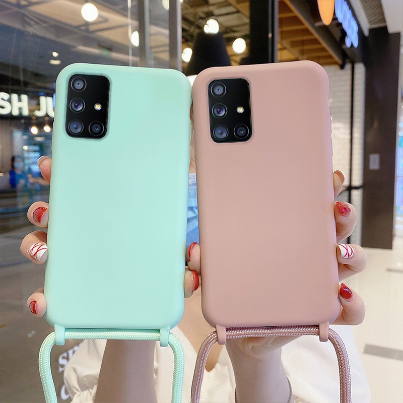 Silicon Plain Nylon Sling Strap Casing For Samsung A21S A12 A13 A14 A34 A54 A15 A55 Novelty Phone Case