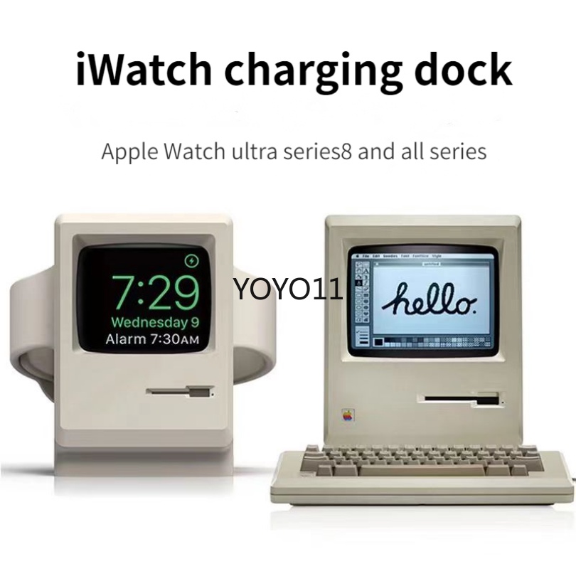 Silicone Charger Stand for Apple Watch Ultra 49mm 45 44 8 7 6 5 4 for iWatch 42mm 41 40 38 3 2 1 Charging Dock Holder Retro Computer Pattern Keeper Bracket Base