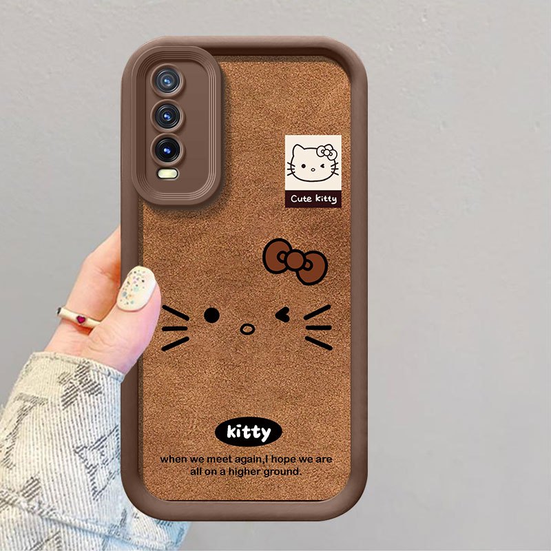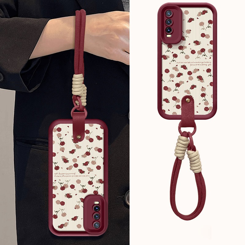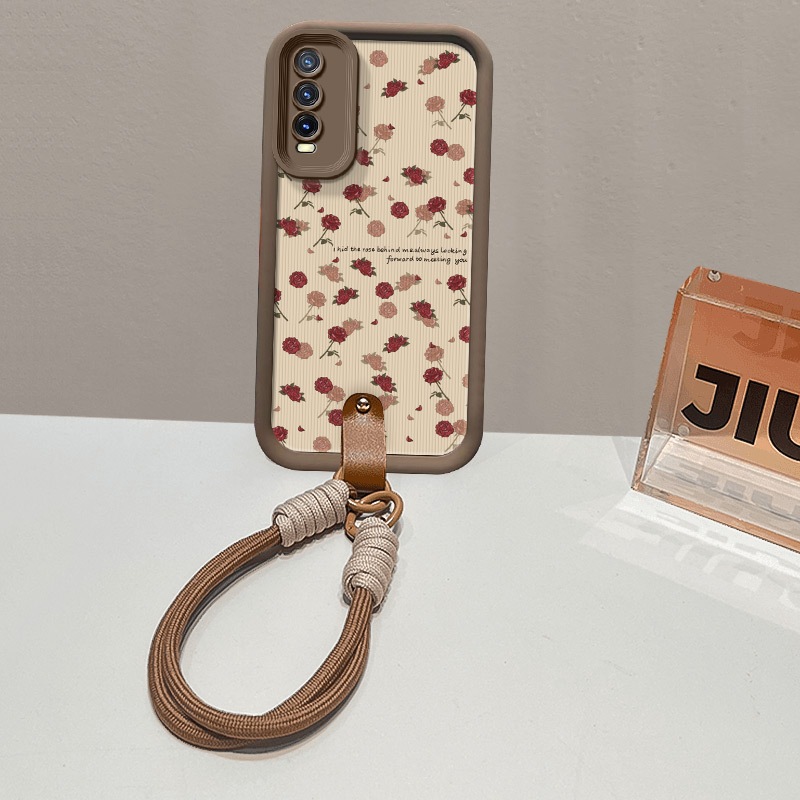 Silicone Soft Shell Cartoon Leather Phone Case Hand Strap Phone Protective Case Suitable for Vivo Y11s/Y30 2021/Y30 V2034A/V2043/V2048/V2027/V2032/V2029