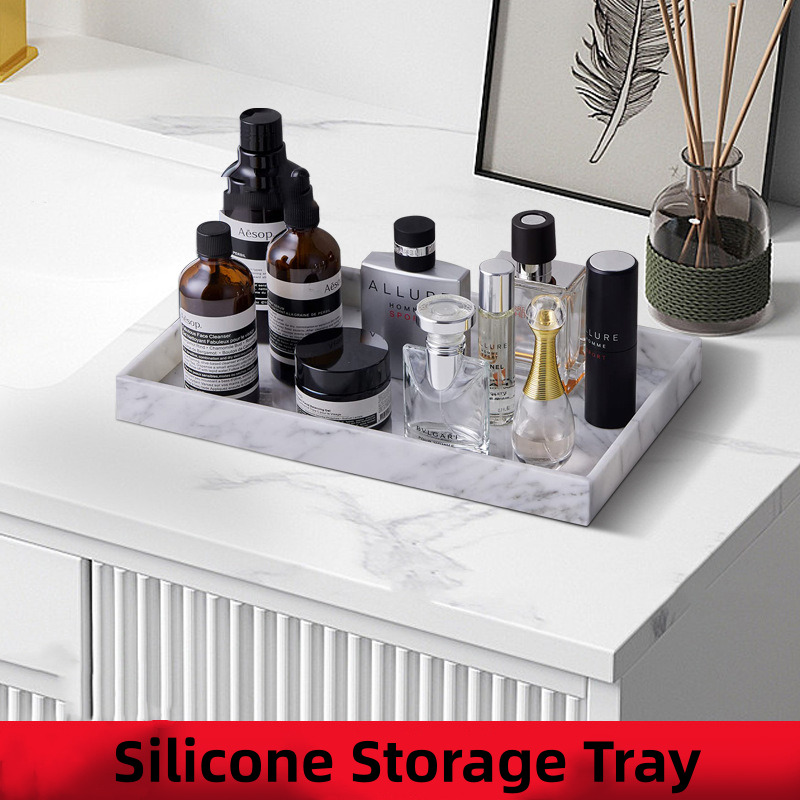 Silicone Storage Tray Bathroom Kitchen Living Room Dresser Cosmetic Countertop Soap Dispenser Tray