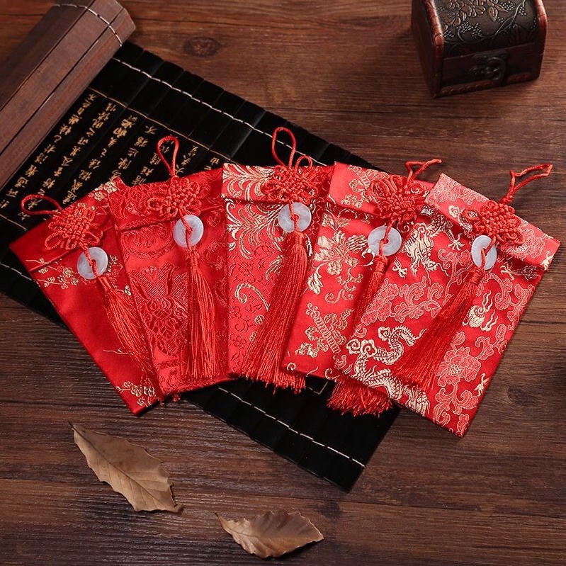 Silk Red Envelopes Chinese New Year Hongbao New Year Lucky Pocket For New Year Christmas Wedding