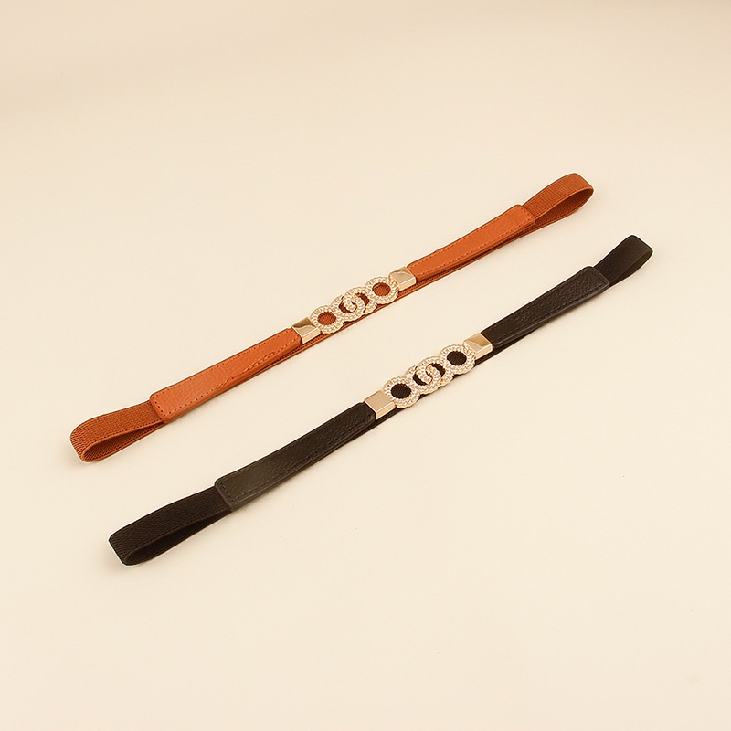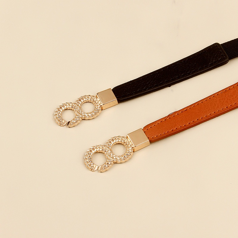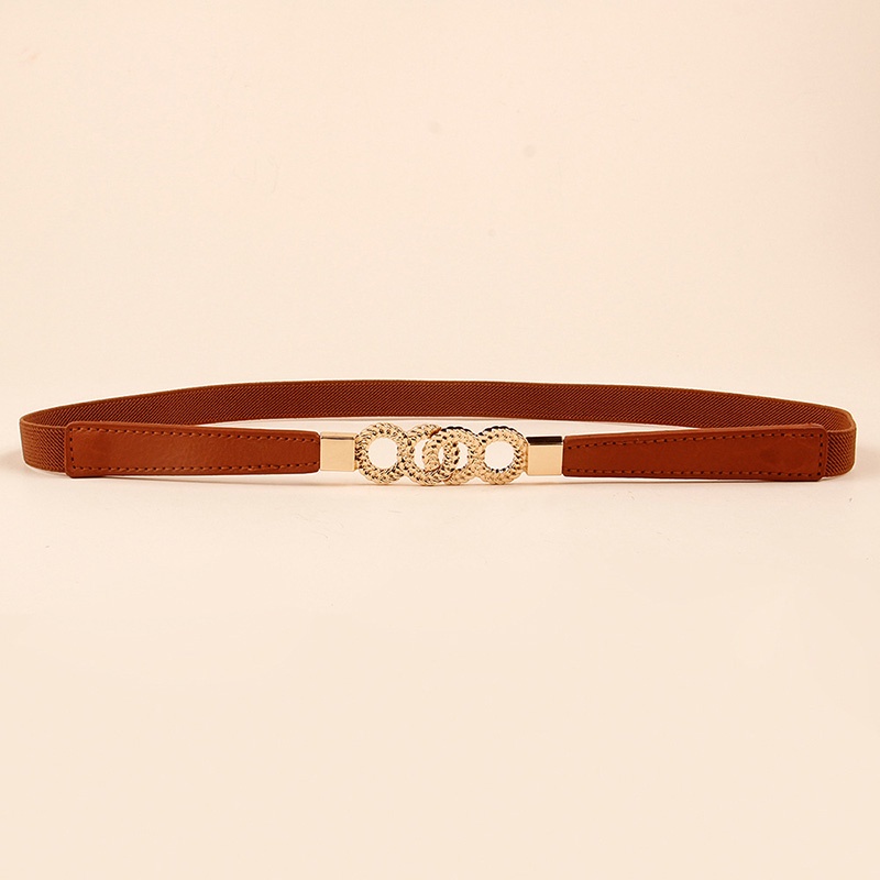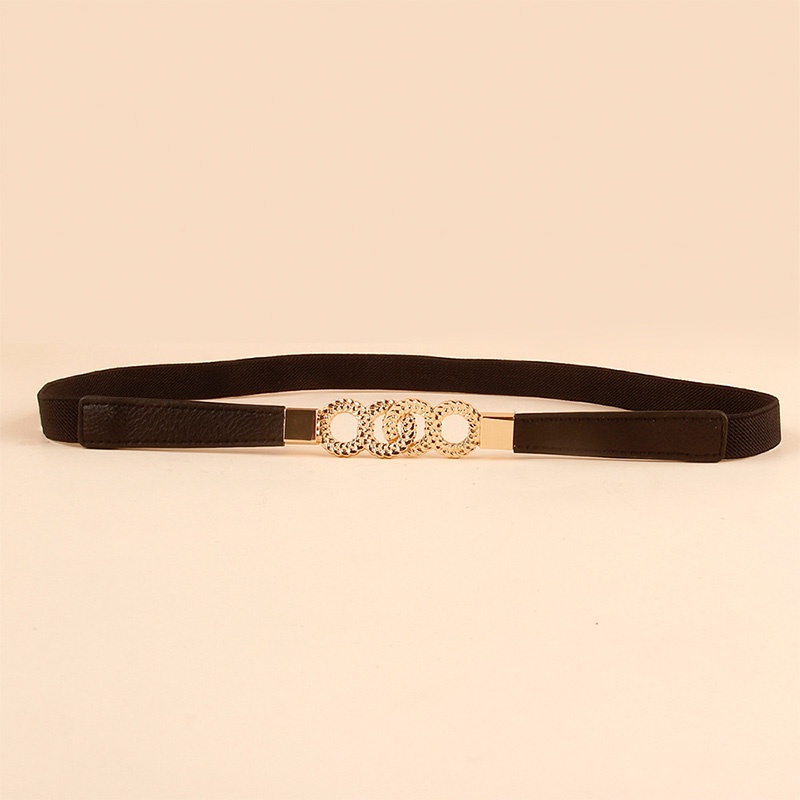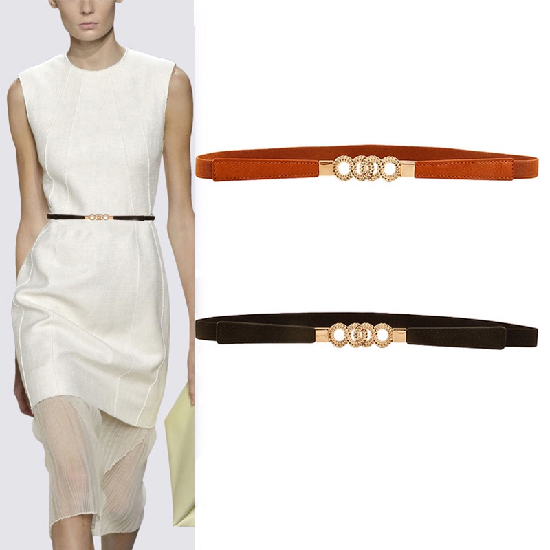 Simple Fashion Belts for Women Lady Elastic Thin Belt Gold Round Buckle Decoration Coat Sweater Dress Waistband