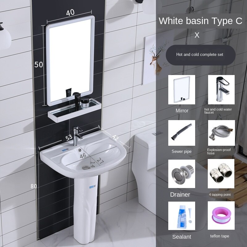 Simple column basin household washbasin integrated ceramic wash basin small floor-type mini balcony Basin