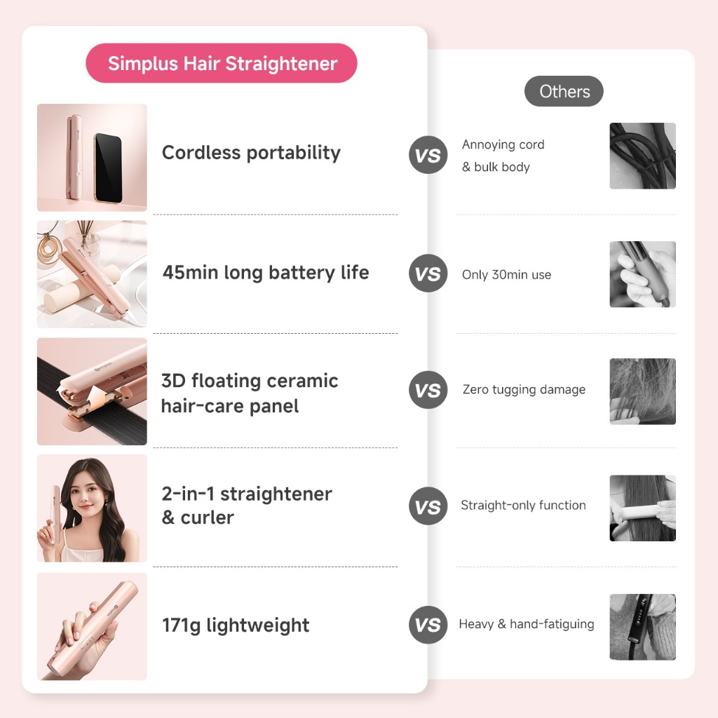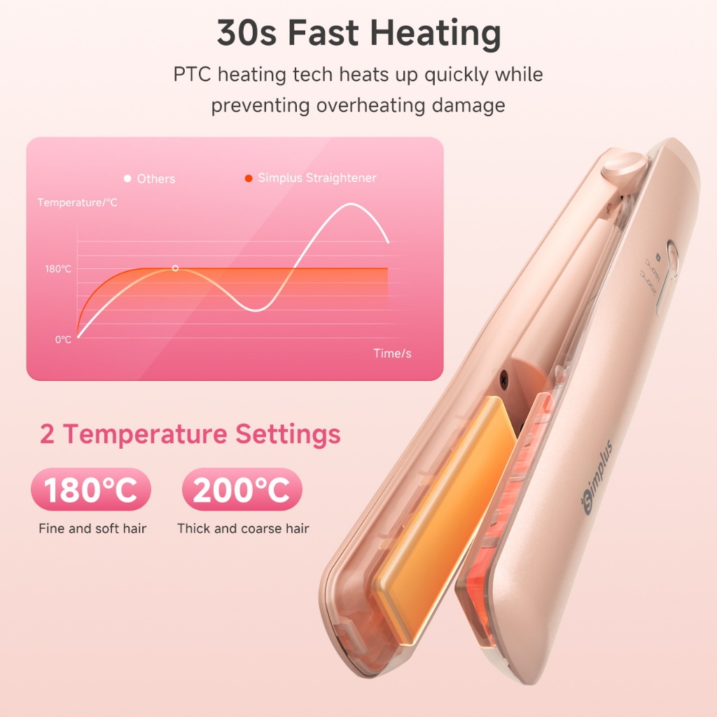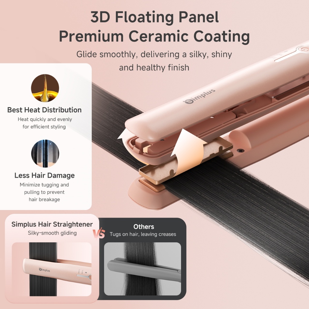 Simplus Cordless Hair Straightener | 45mins Battery Life | 3D Floating Ceramic Panel | 2-in-1 Straight & Curl | ZFBA008