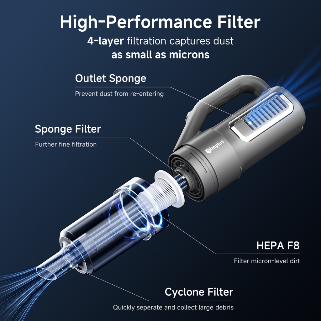 Simplus Vacuum Cleaner | 18,000Pa Suction Power | 11 in 1 Interchangeable Nozzle Head | 4 Layer Stertilization XCQH011