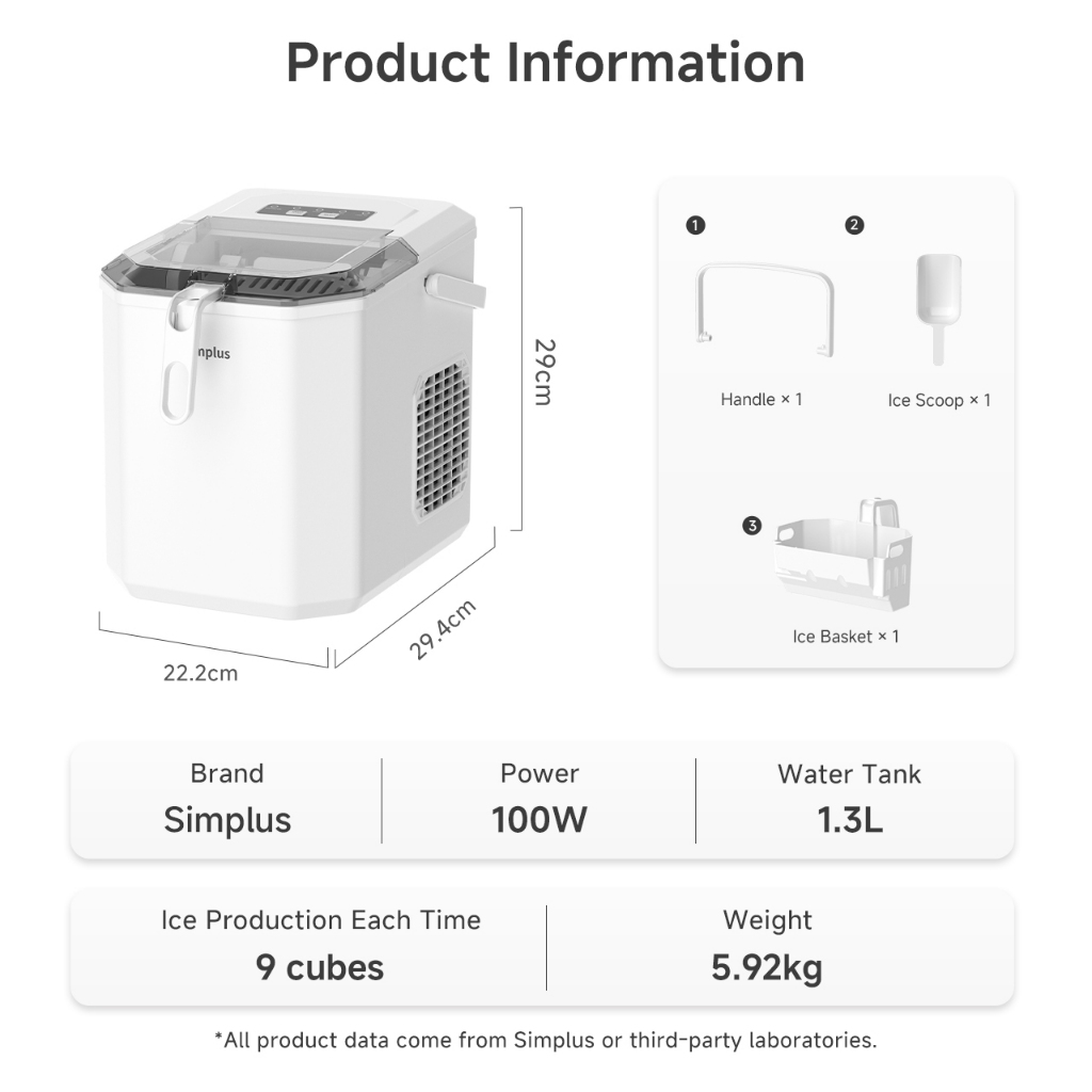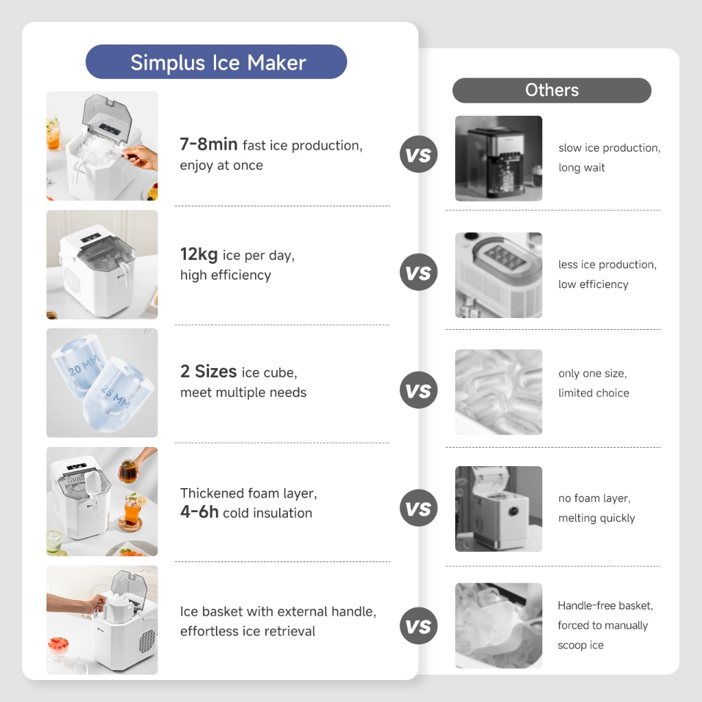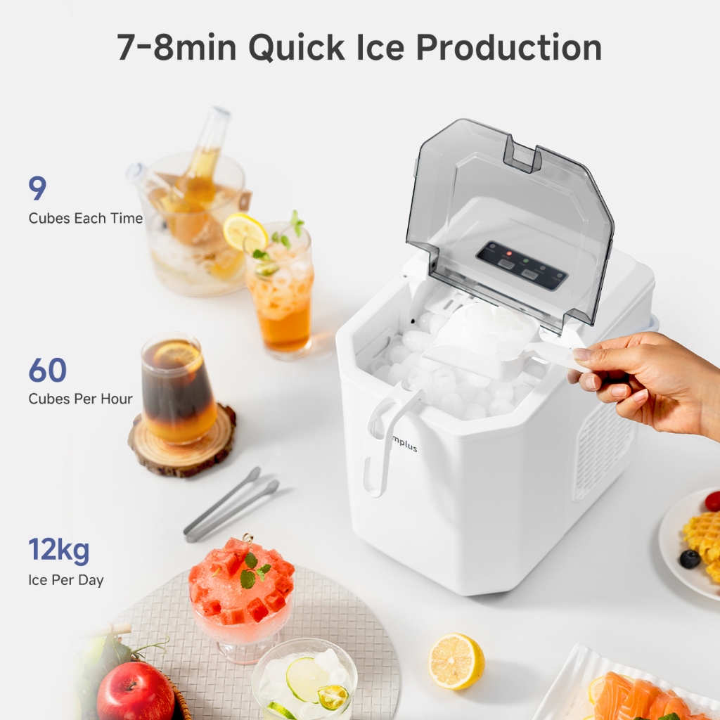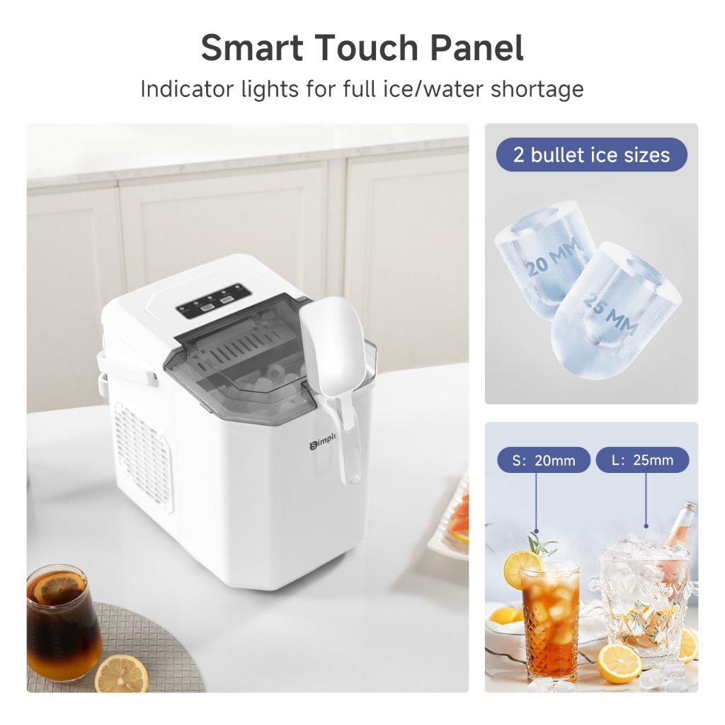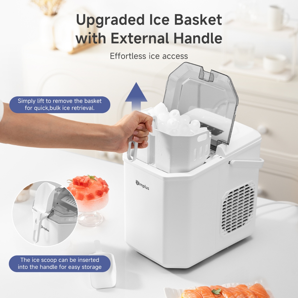 Simplus Ice Maker | 12kg Homemade Ice Cubes | 24h Reservation | Auto Self-Cleaning Function ZBJH001