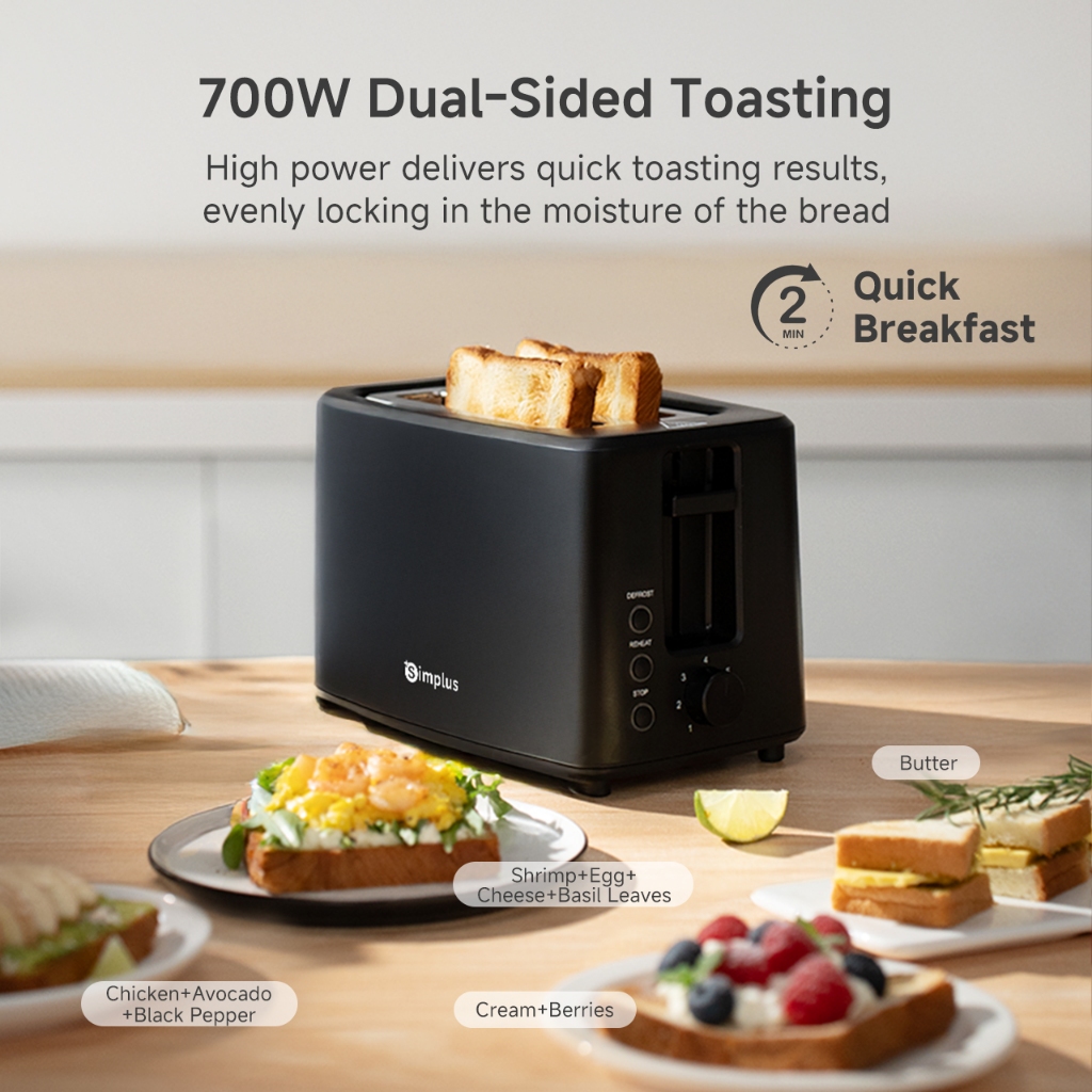 Simplus Toaster | 700W High Power | 7-Level Toasting Settings | 2-Minute Quick Breakfast DSLU007