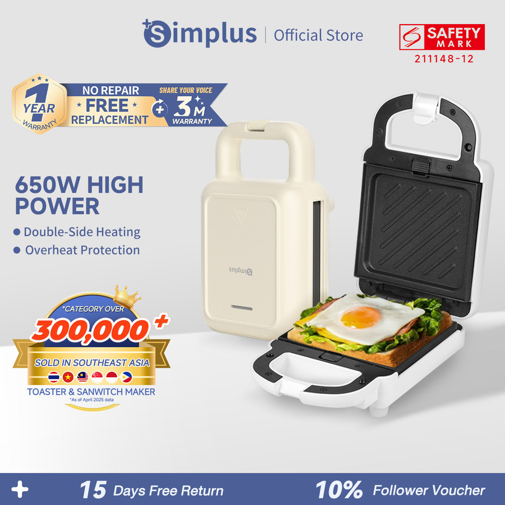 Simplus Sandwich Maker | 650W | Panini Waffle Breakfast Bread Crepe | Portable Household SMZJ001/004