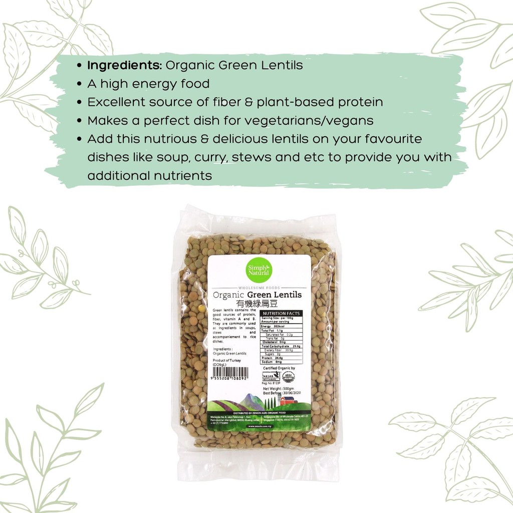 Simply Natural Organic Green Lentils 500g Turkey