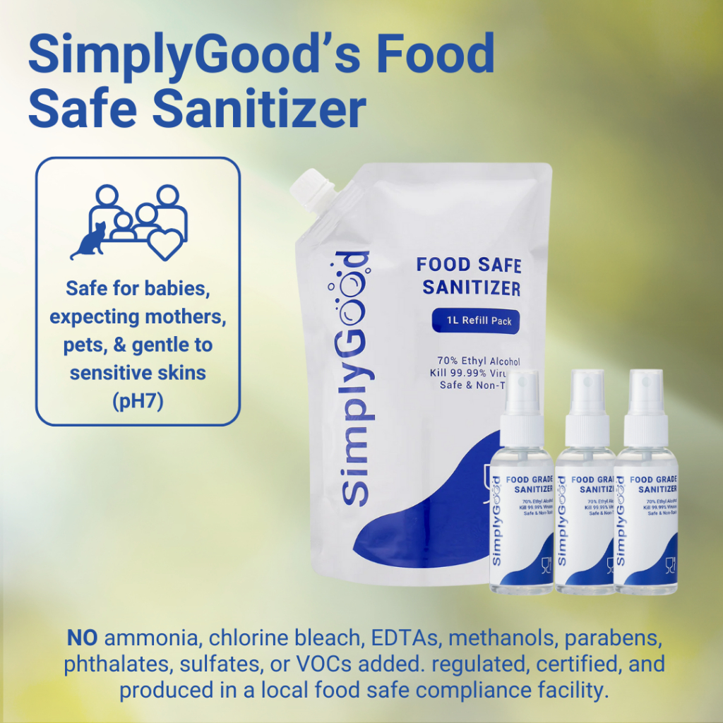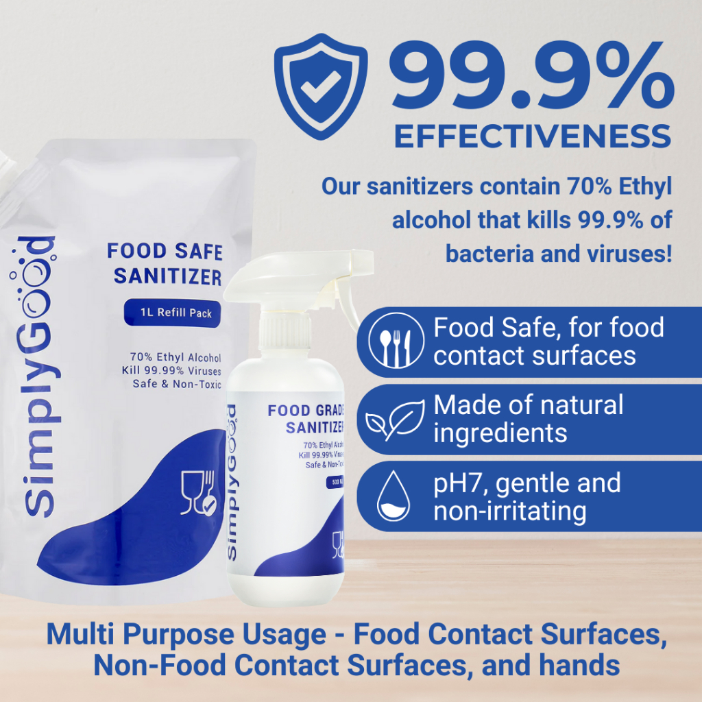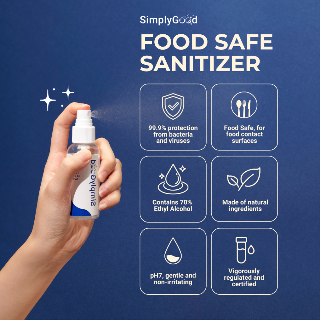 SimplyGood Food Safe Sanitizer Spray | No Rinse Kitchen & Surface Cleaner (50ml x3 / 1L / 5L)