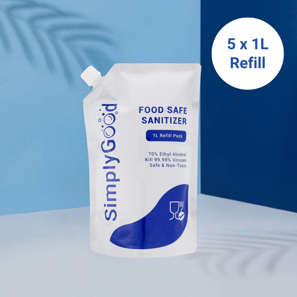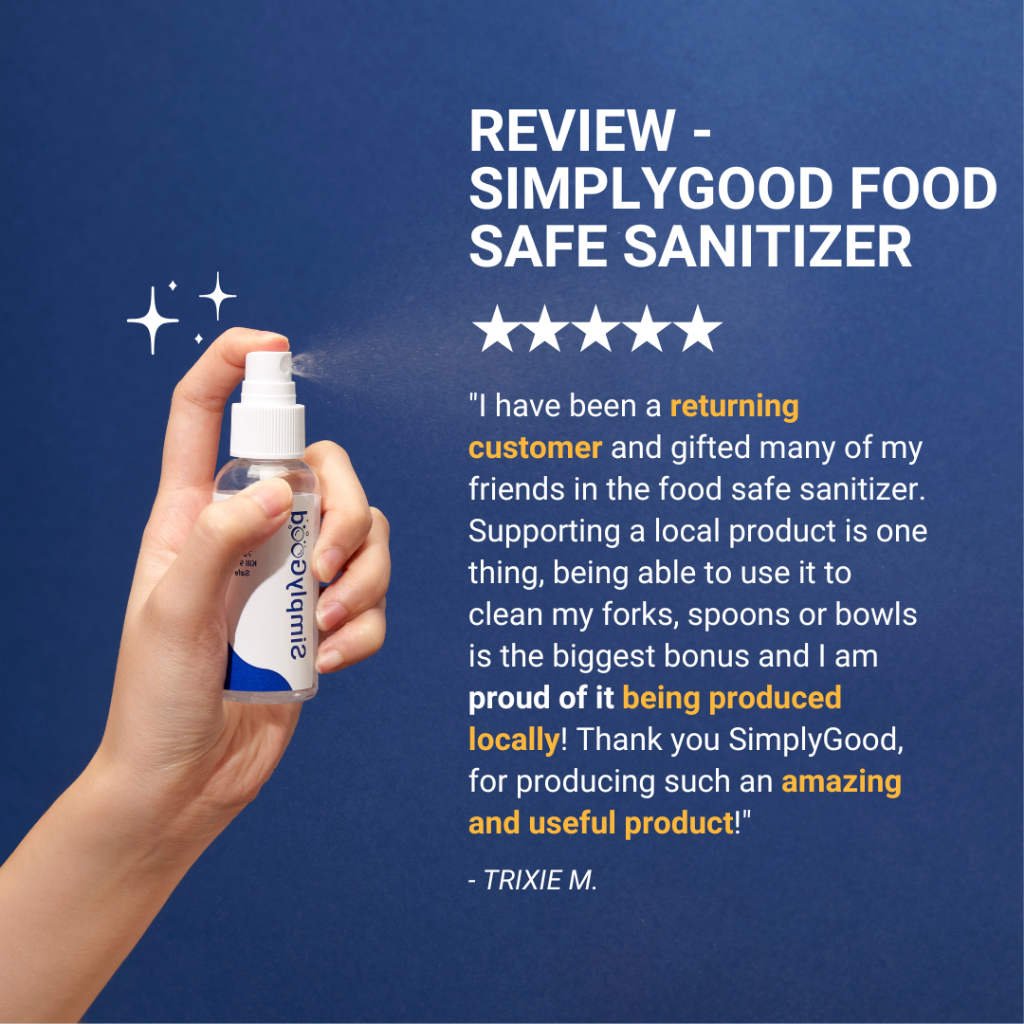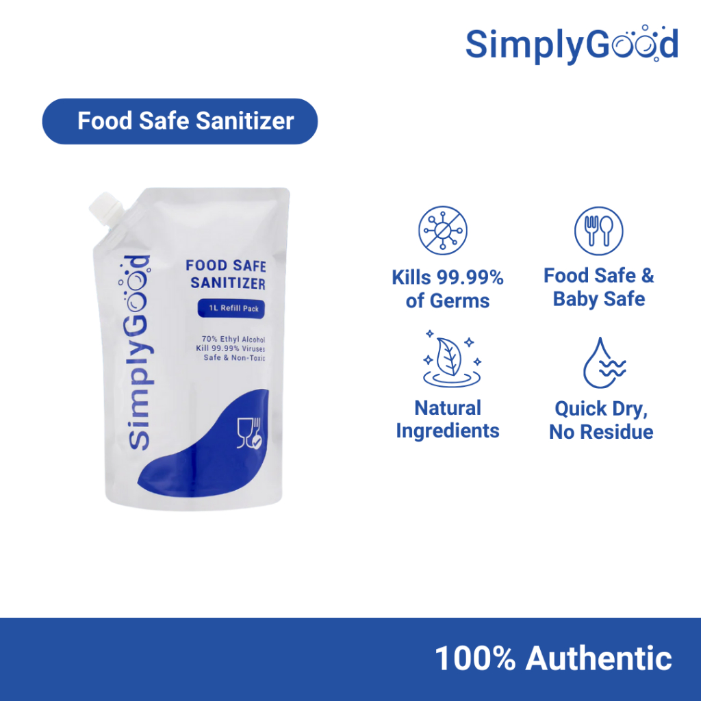 SimplyGood Food Safe Sanitizer Spray | No Rinse Kitchen & Surface Cleaner (50ml x3 / 1L / 5L)