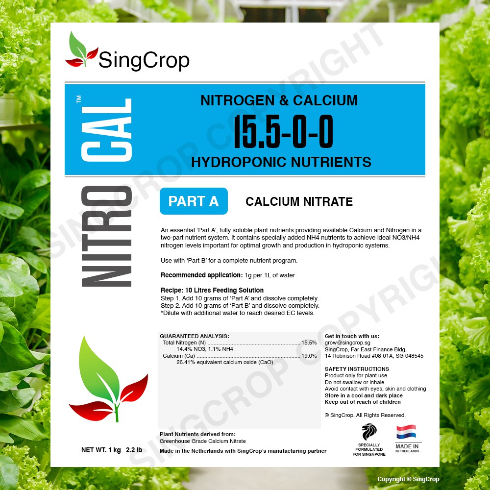 SingCrop HYDRO-PRO hydroponic nutrients / dry powder A & B / for leafy greens / dry hydroponics fertiliser fertilizer