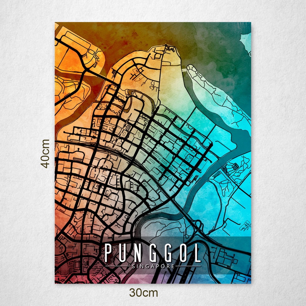 Singapore City Punggol Map Contemporary Art Decor Poster